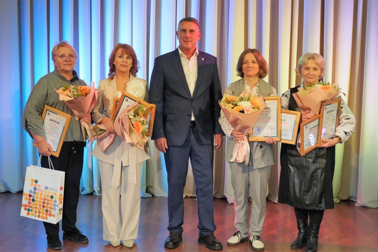Сегодня в Культурном Центре «Акрон» вместе с заместителем исполнительного директора по персоналу и социальным вопросам ПАО «Акрон» Андреем Евгеньевичем Пестовым поздравили победителей городского конкурса «Вместе с Акроном к успеху в учебе и карьере» и «Успешное образование вместе с Акроном» в номинациях