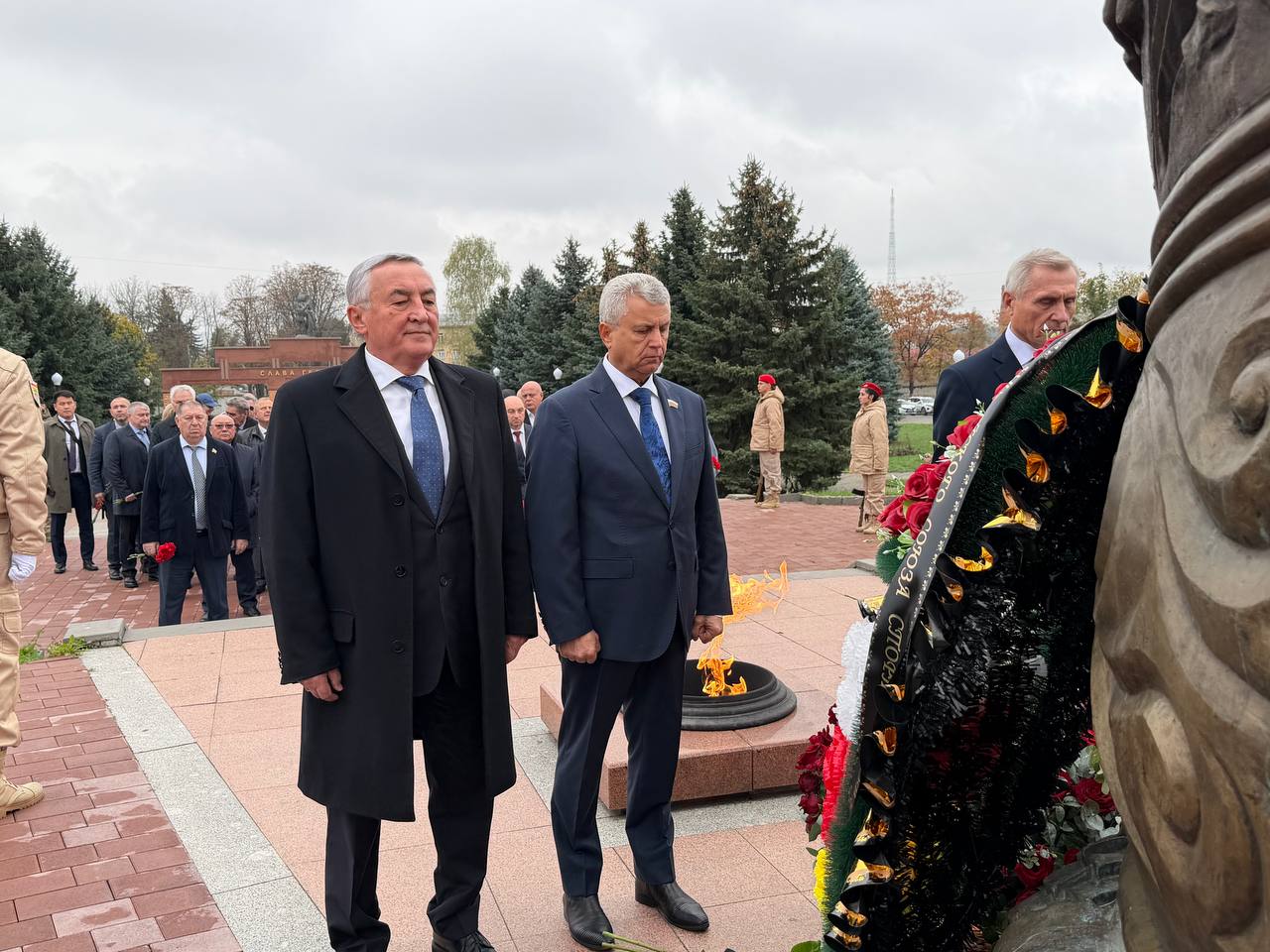 Мероприятия начались с возложения цветов к Вечному огню на Мемориале Славы во Владикавказе.