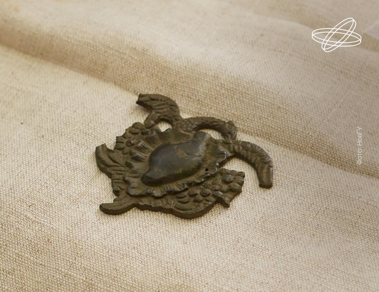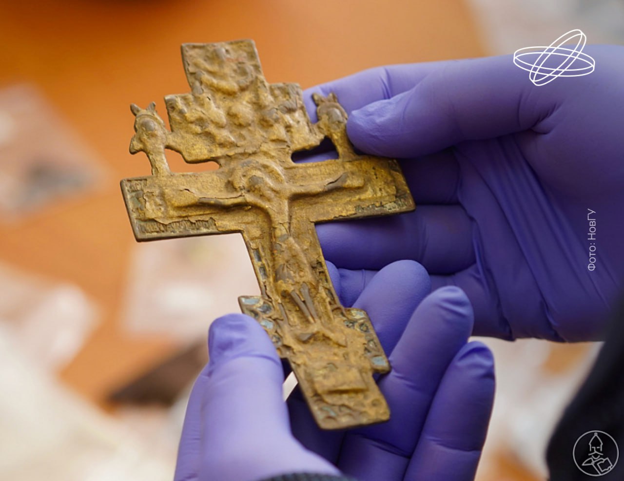 Всего в этом году раскопки в Старой Руссе принесли порядка 2000 предметов. Среди них крупный наперсный крест, металлический жетон с изображением пеликана и фрагмент старинной бутылки из-под, предположительно, контрафактной продукции того времени.