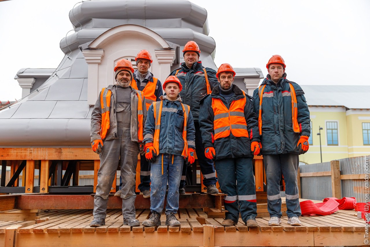 В Валдае водрузили шпиль на колокольню Введенской церкви