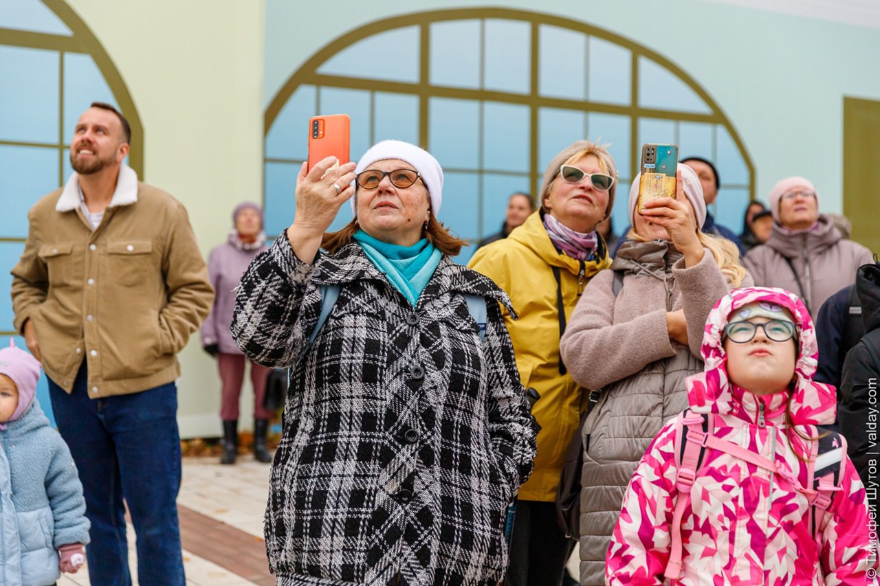 Многочисленные зрители и строители с интересом наблюдали за подъёмом. Горожане фотографировали каждый этап водружения шпиля, запечатлевая на память все детали исторического момента.
