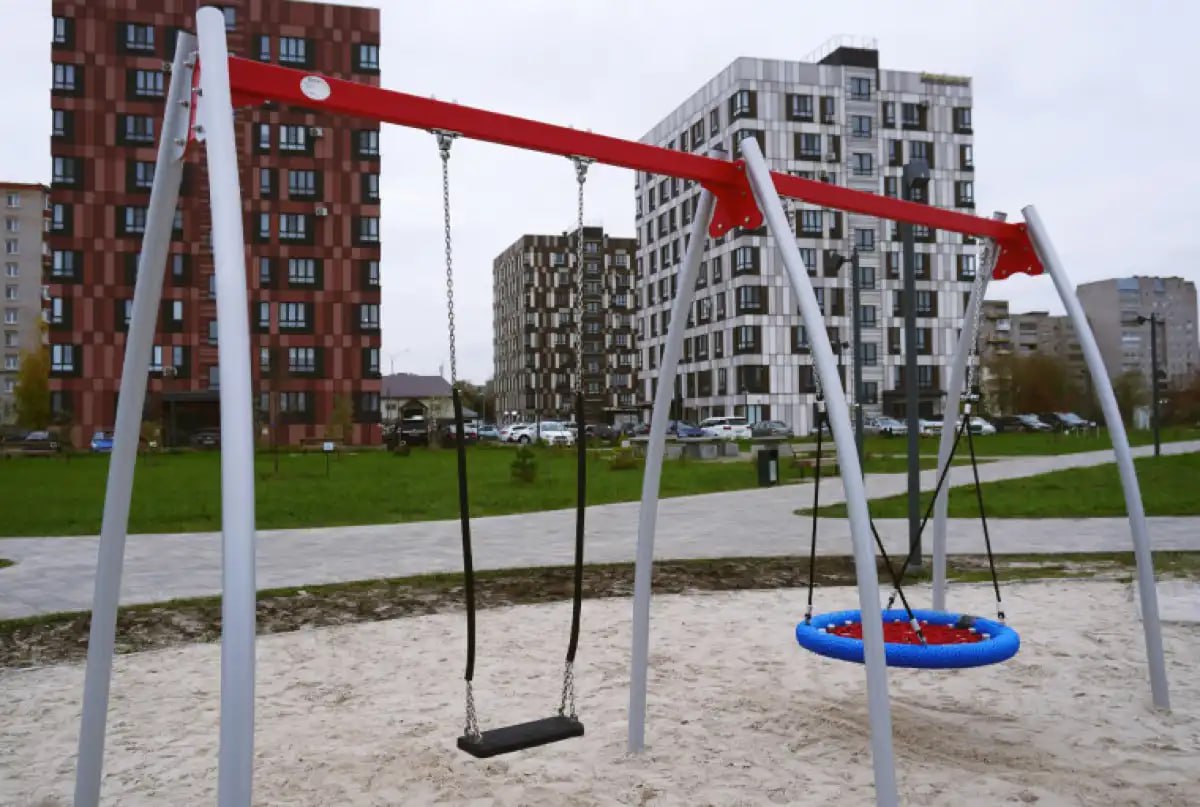 В этом году парк пополнился перголой (деревянный навес), урнами и скамейками. Также сделан дренаж в местах подтопления и подготовлено основание для детской площадки из кварцевого песка. На днях специалисты завершили монтаж игровой конструкции с канатным наполнением, качелей и балансиров.