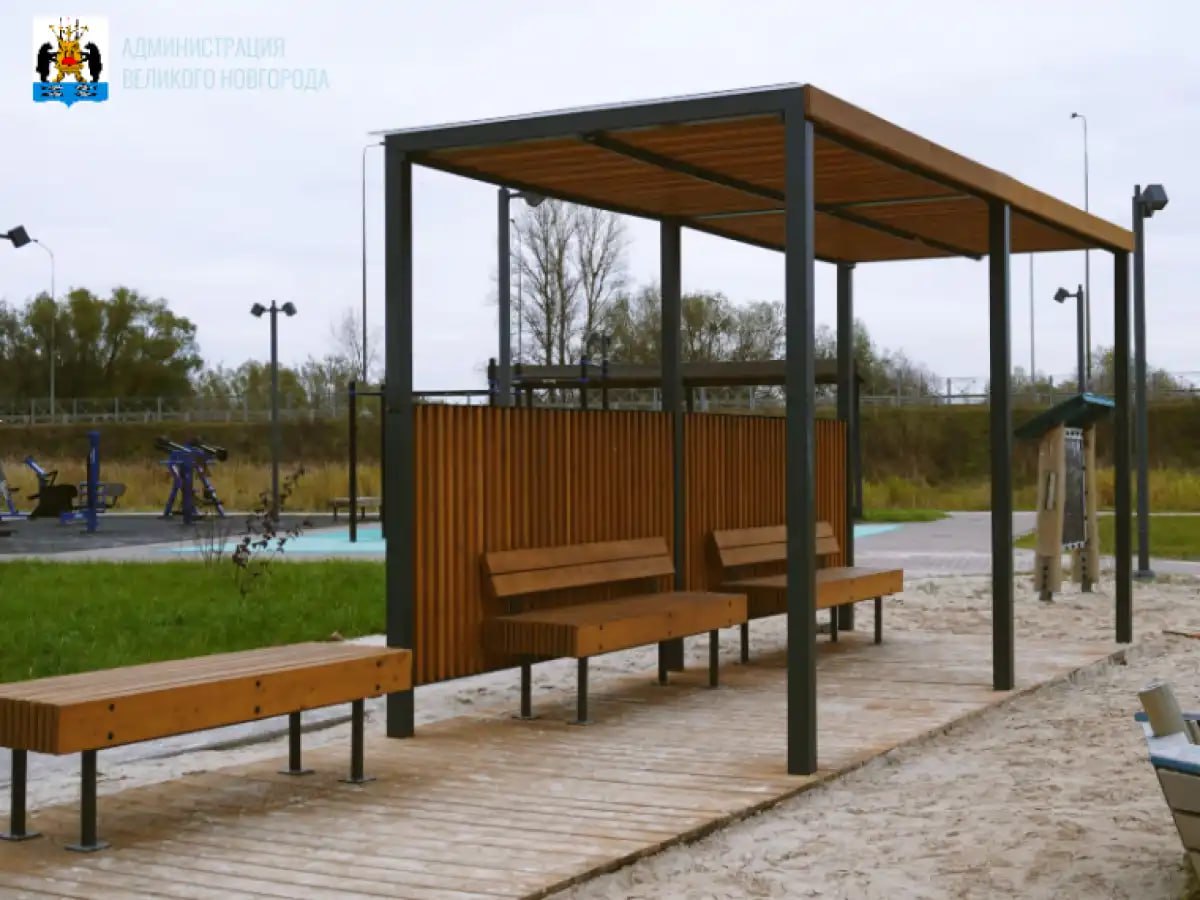 В новгородском парке «Чистые пруды» установили перголу (что это!?) и канатную конструкцию