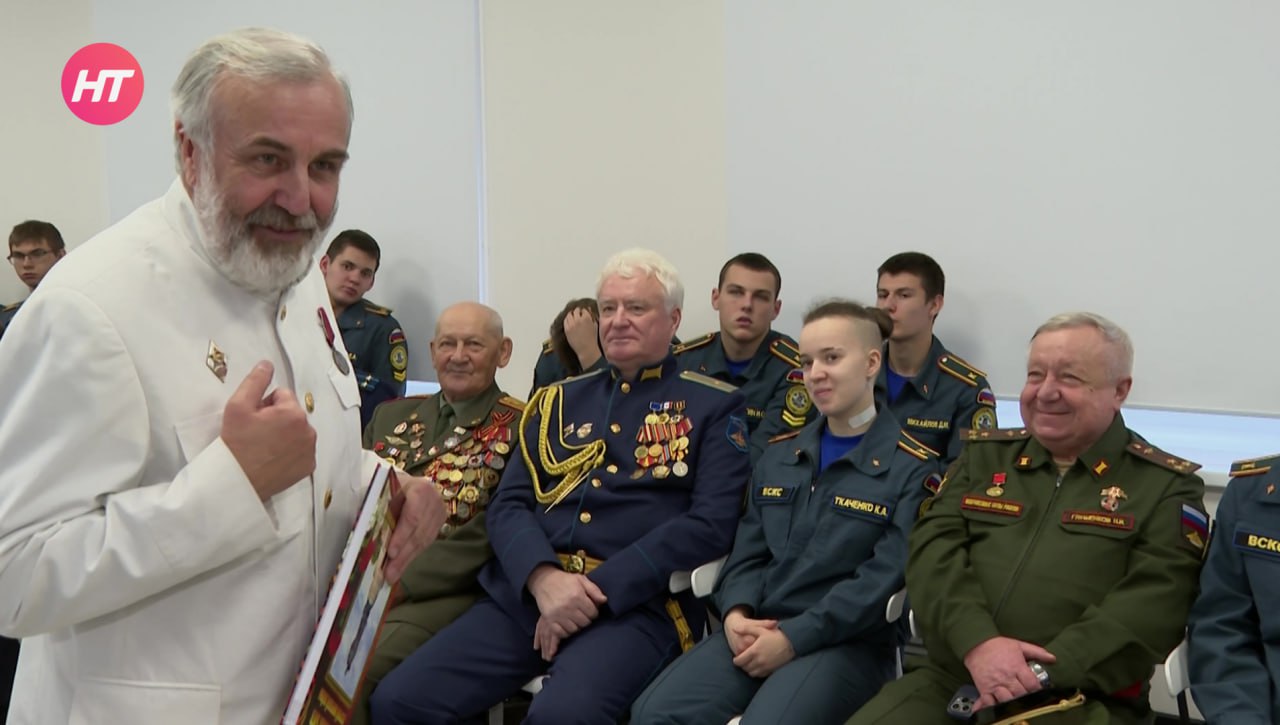 Сергей является автором энциклопедии «20 великих битв Второй мировой войны» и руководителем международной героико-патриотической экспедиции «От моря до моря помнит мир спасенный». Автор рассказал о работе над энциклопедией, созданной совместно с преподавателями, студентами и школьниками. В завершение встречи участники вместе с писателем возложили цветы к обелиску Герасименко, Красилова и Черемнова на Ярославовом Дворище.
