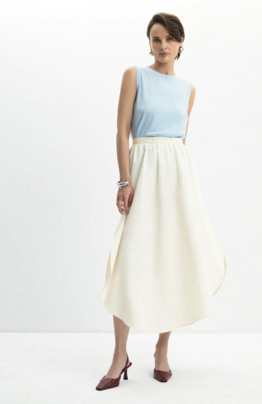 Бежевый и белый. Эти цвета особенно актуальны летом, когда низкая маркость обеспечивает удобство. Прекрасно подойдут бежевые макси-юбки с белыми топами для прогулок и деловых встреч.
