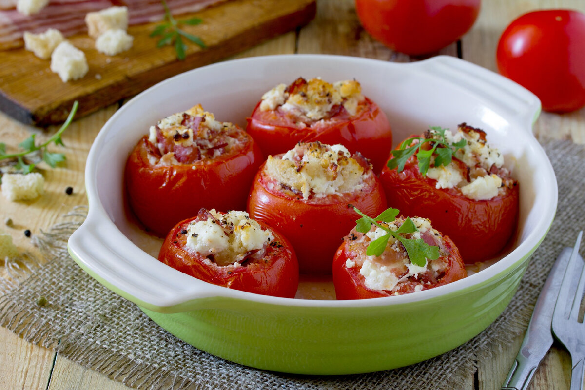 Готовые помидоры выглядят невероятно аппетитно и могут стать как основным блюдом, так и гарниром к кускусу или рису. Для обогащения вкуса можно добавить свежий базилик или петрушку.