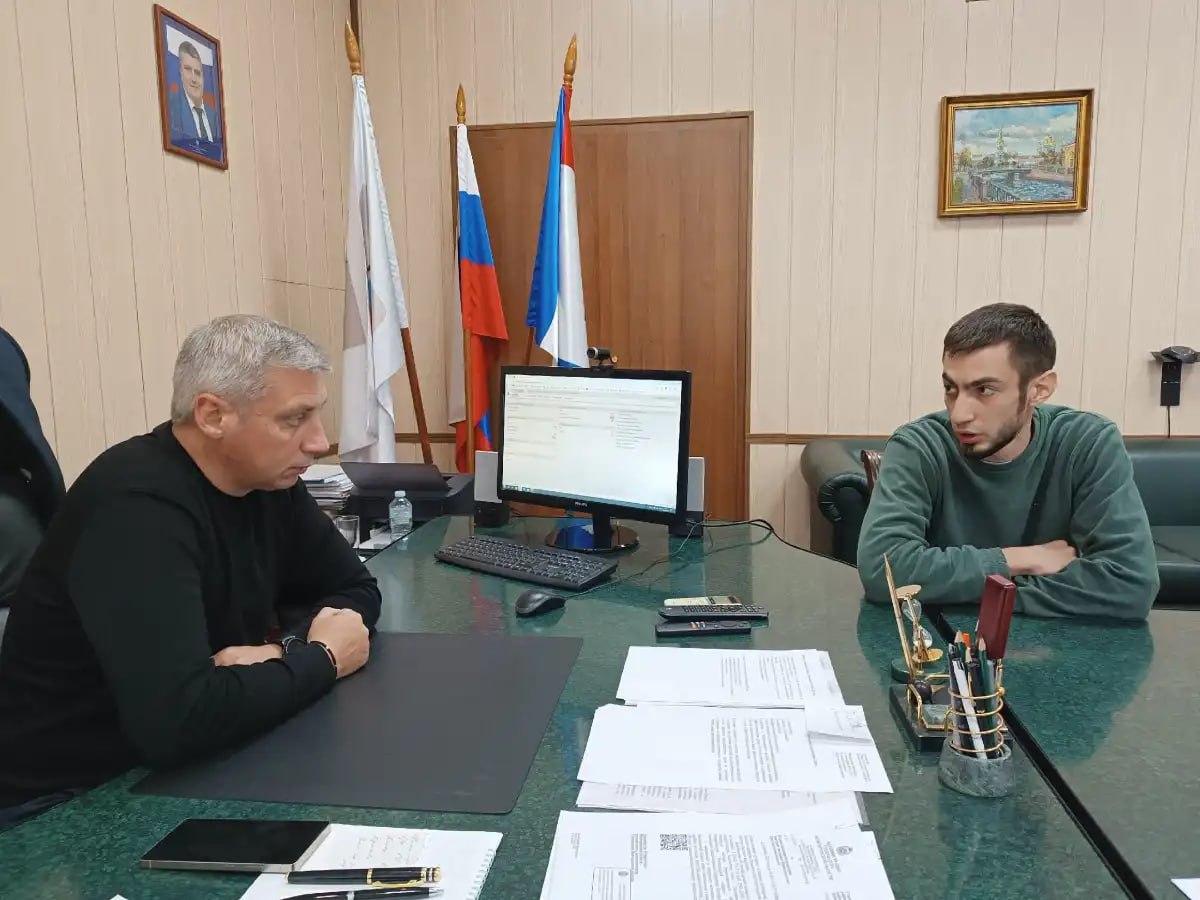 Глава муниципалитета Андрей Герасимов провел встречу с Эркентом Дмитриевым, на которой обсуждались планы по организации мероприятий по патриотическому воспитанию молодежи.