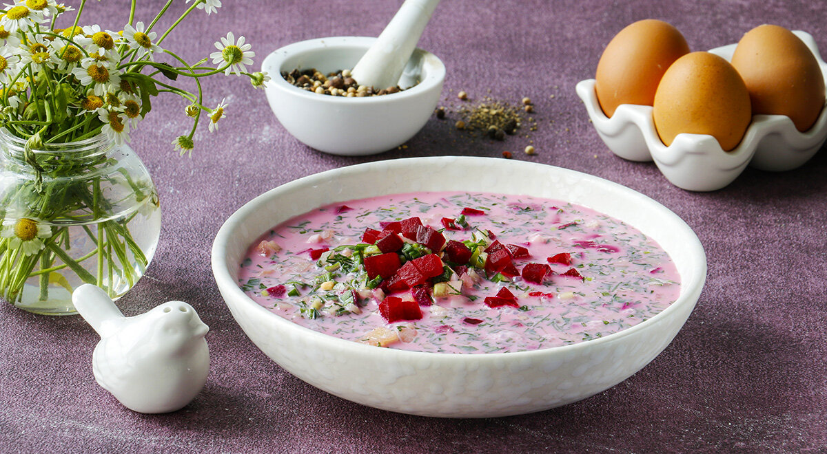 Сочетание мягкой свеклы, хрустящих огурцов и ароматных свежих трав в сочетании с прохладным кефиром не оставит равнодушными даже самых искушенных ценителей кулинарии. Каждая ложка этого супа может стать настоящим наслаждением в летний зной.