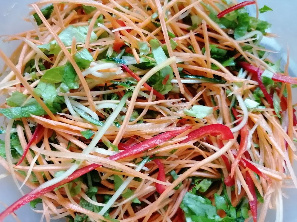 Погрузитесь в мир вкуса с легким азиатским салатом, который обострит ваши кулинарные ощущения и добавит нотки экзотики в повседневное меню. Этот салат из свежих овощей с имбирной заправкой не только полезен, но и восхитительно ароматен. Рекомендуется наслаждаться им сразу после приготовления, когда уже чувствуете сочность и яркие ароматы каждого ингредиента.