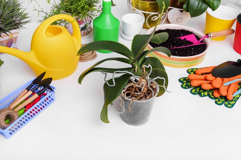 - Пересадка после цветения. Дождитесь, пока орхидея не цвел, аккуратно извлеките её из горшка и поместите в воду для размягчения почвы. Это поможет удалить мертвые корни и обработать растение.