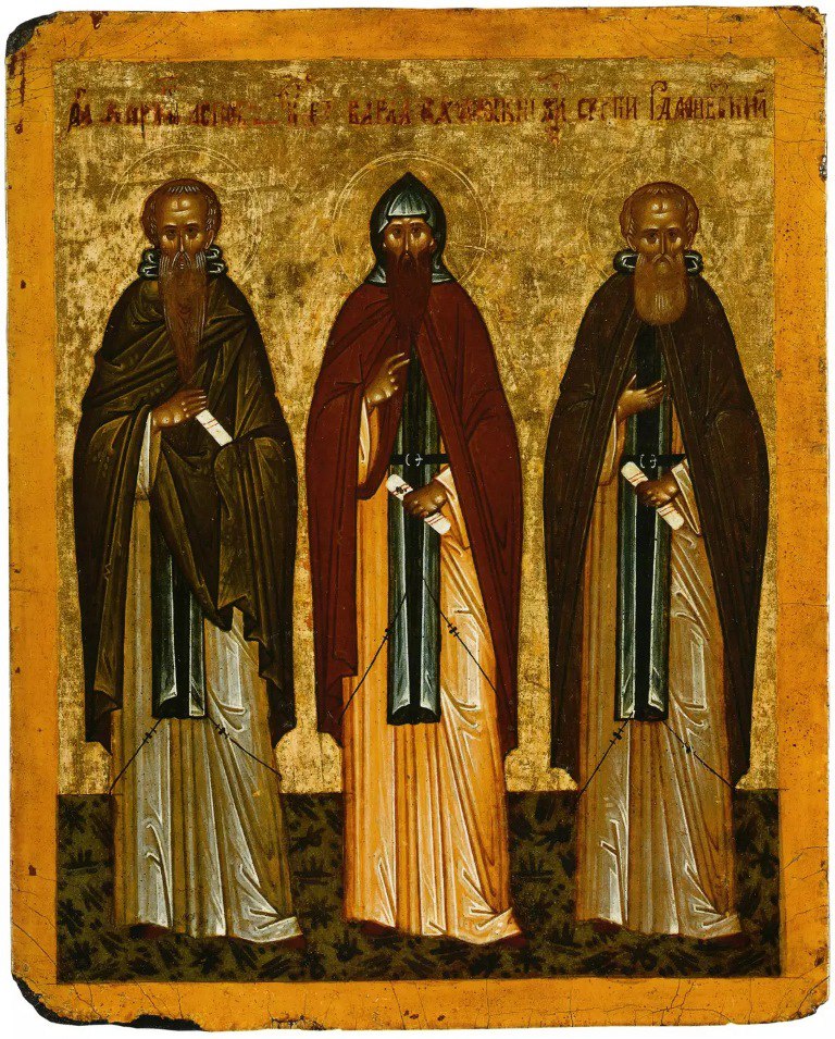 Иллюстрации: примеры икон, на которых преподобные Сергий и Варлаам изображены вместе.