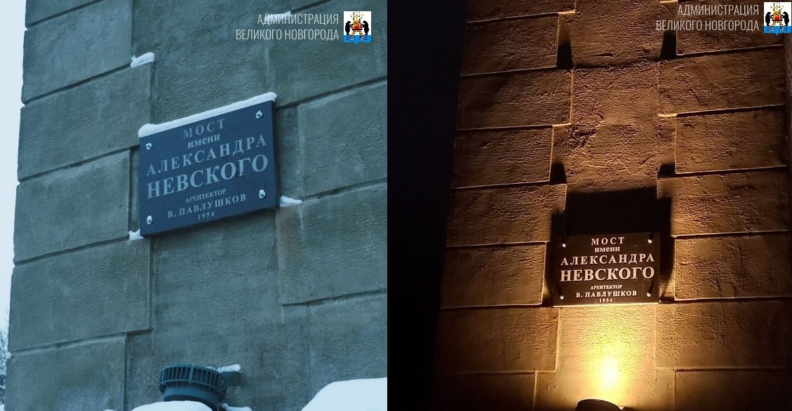 Как уточнили в мэрии, надписи выполнены методом фрезерования, а декоративный элемент изготовлен из натурального камня. Также в вечернее время табличка хорошо видна благодаря архитектурной подсветке.