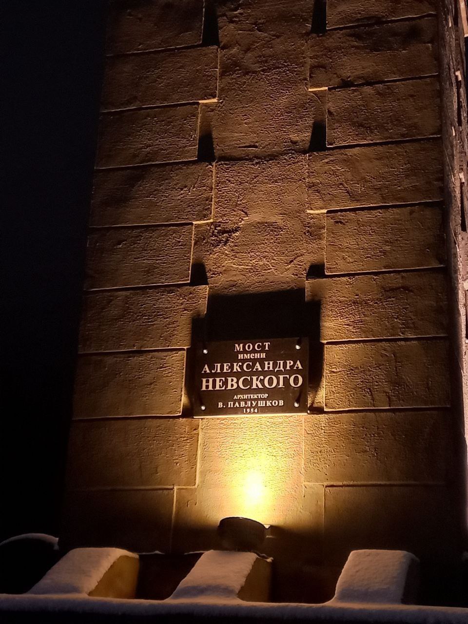 На двух стелах моста имени Александра Невского установили именные таблички, которые изготовлены по имеющимся эскизам и полностью соответствуют историческим оригиналам.