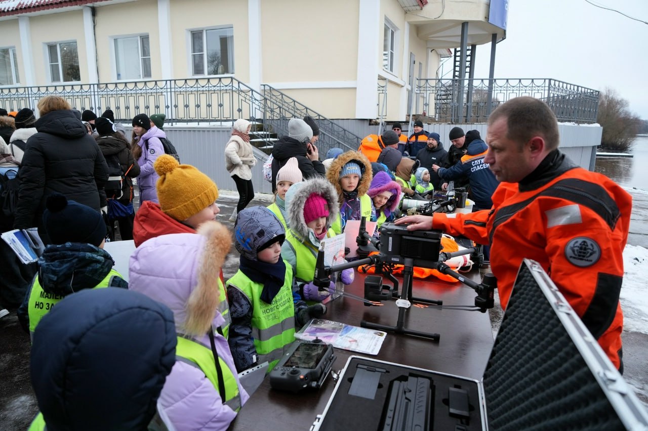 Накануне, 21 ноября, в Великом Новгороде на набережной Александра Невского для новгородских школьников прошёл открытый урок, посвящённый подготовке специалистов Управления защиты населения от ЧС и по обеспечению ПО региона к зимнему сезону.
