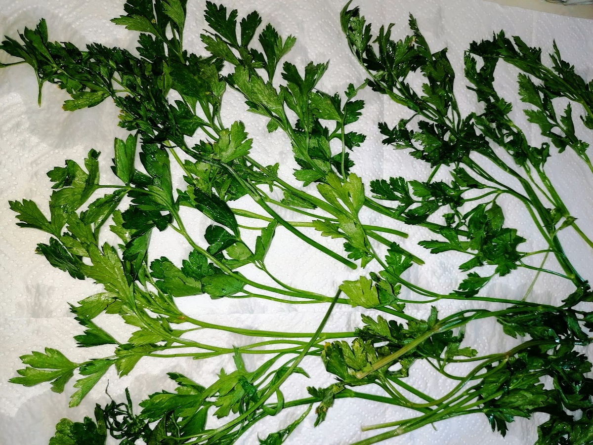 - Перед заморозкой зелень следует тщательно промыть и обсушить. Это можно сделать с помощью бумажного полотенца или оставив в стакане без воды. Важно, чтобы зелень была абсолютно сухой, иначе при морозильной обработке она слипнется.