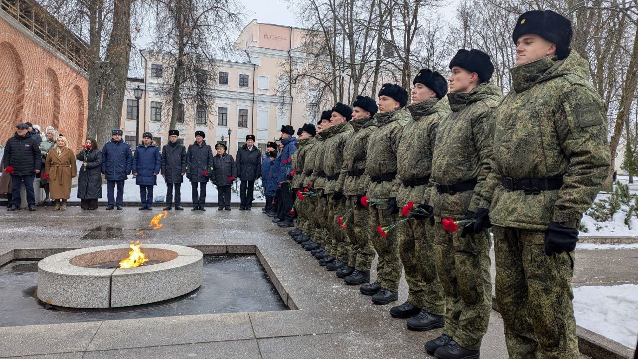 Торжественно проводить ребят у Вечного огня в Новгородском кремле пришли представители органов власти, военнослужащие, школьники и родные новобранцев.