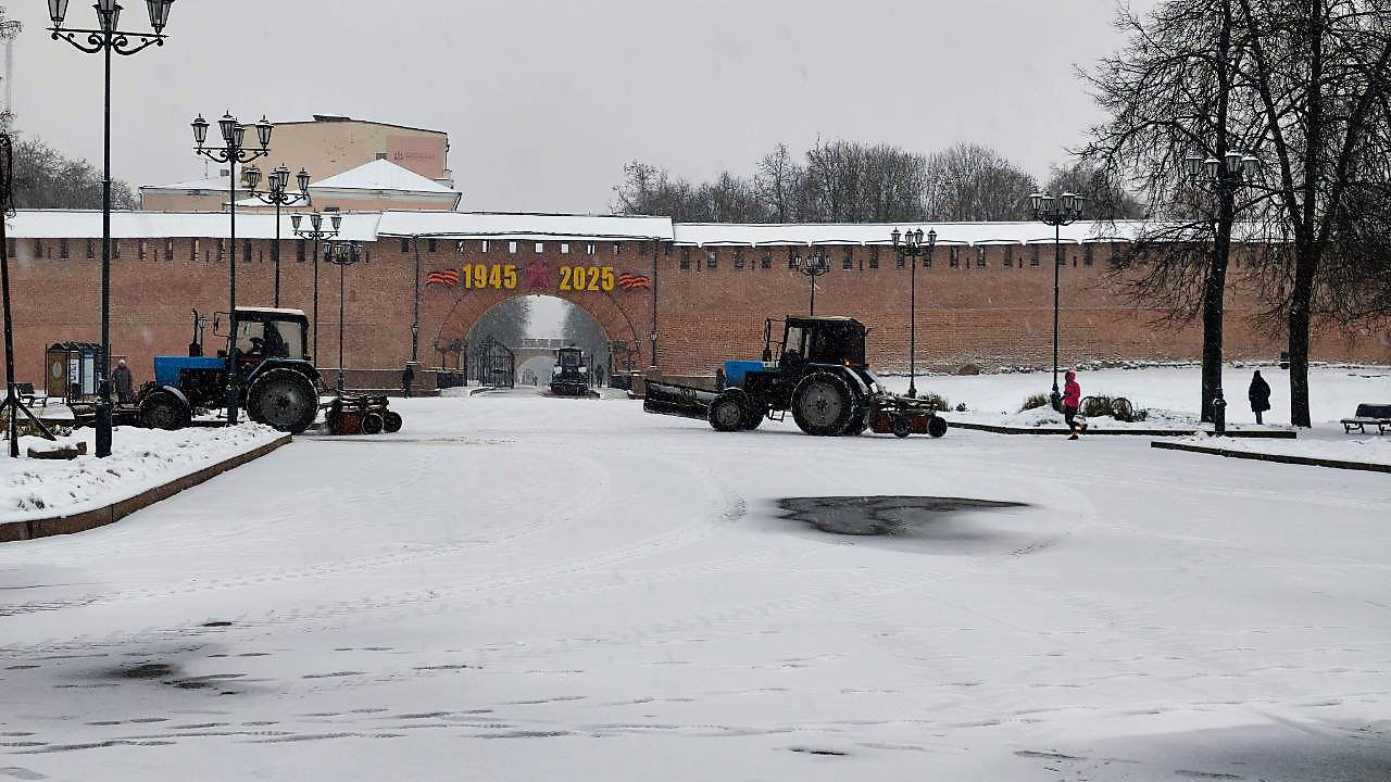 В Великом Новгороде продолжается уборка снега