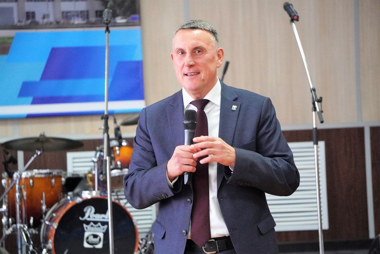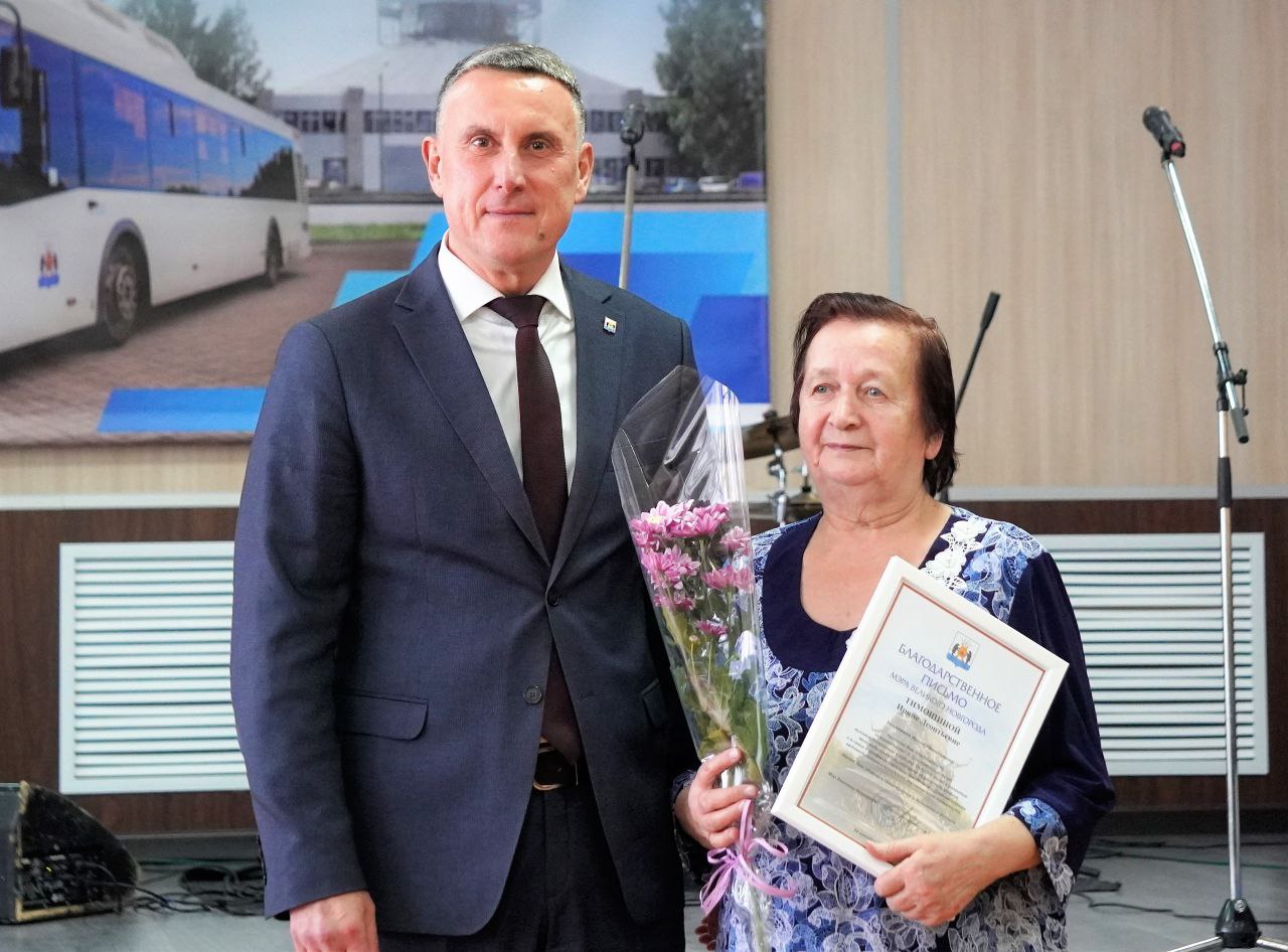 В актовом зале Группы компаний «Круглый гараж» поздравил сотрудников предприятия с юбилеем, пожелал Здоровья, благополучия, успехов, дальнейшего развития и, конечно, благодарных пассажиров.