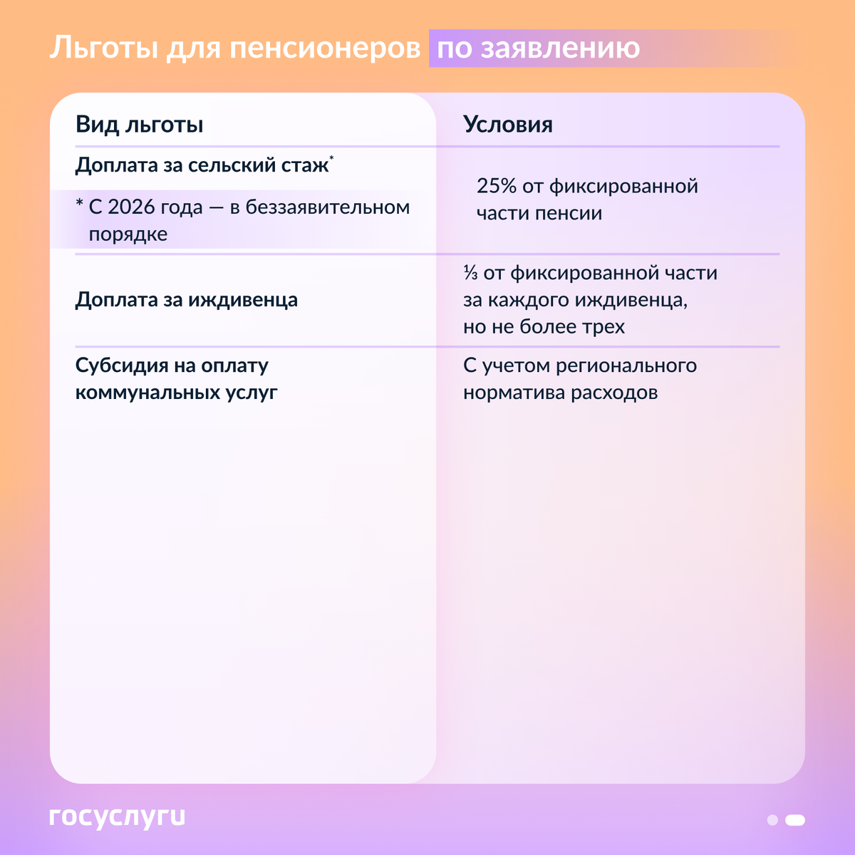 Некоторые пенсионные льготы предоставляются автоматически без запроса со стороны пенсионера. К примеру, выплату, связанную с возрастными и инвалидными категориями, можно получить просто по факту обращения за пенсией. Эти выплаты не требуют дополнительных действий и назначаются на основании собранных документов.
