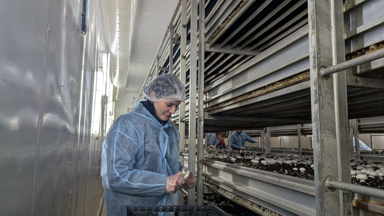 На добровольных началах они помогали в сборе и сортировке шампиньонов. Все средства, заработанные во время визита, будут направлены на покупку принтера.