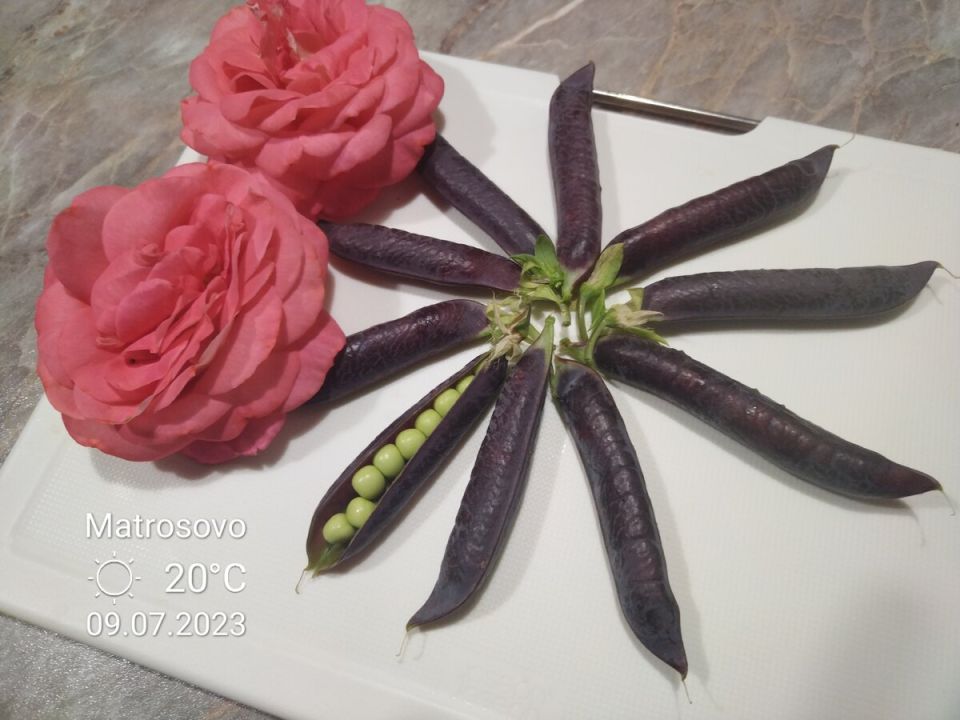 Уход за фиолетовым горохом не требует много усилий после посадки. Завершив начальный этап, остаётся лишь следить за растением. Сбор урожая становится настоящим ритуалом: стручки длинные, до 10 см, и полны сладких зеленых горошин. Если времени на сбор не хватает, оставшийся урожай можно заморозить, что позволяет наслаждаться вкусом свежего гороха в зимнее время.