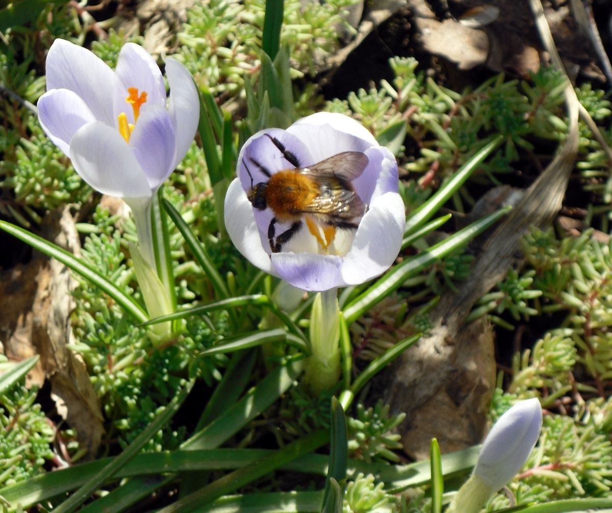 Уход за крокусами минимален. Можно замульчировать почву перед зимой компостом или листвой. Удаляйте увядшие цветы, чтобы не портить красоту цветника и не допускать истощения луковиц — листья не стоит обрывать, пока они сами не пожелтеют.