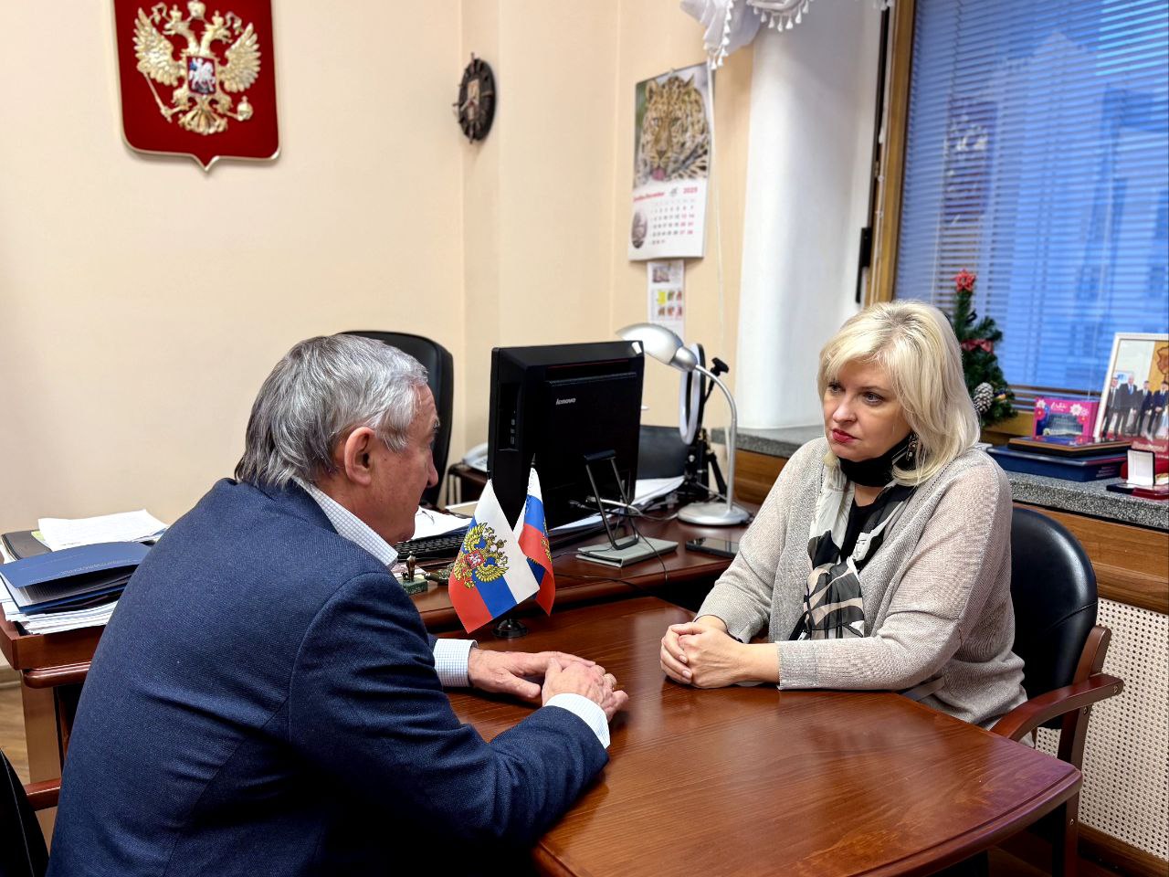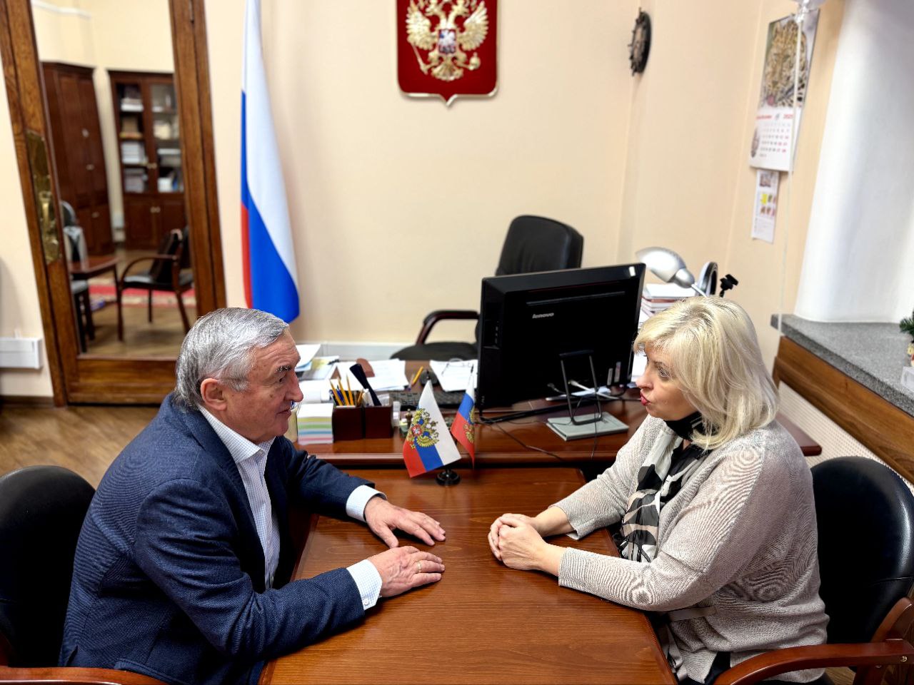 Перед началом утверждённой повестки на площадке нижней палаты парламента встретился с депутатом Государственной Думы Еленой Моисеевной Цунаевой.