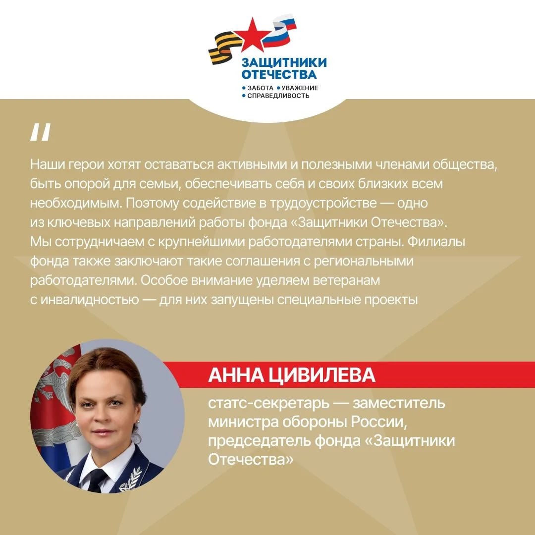 ФондЗащитники Отечества помогает ветеранам СВО: от партнёрства с крупными работодателями до уникальной программы переподготовки СВОи Герои 53. Вся информация в карточках.