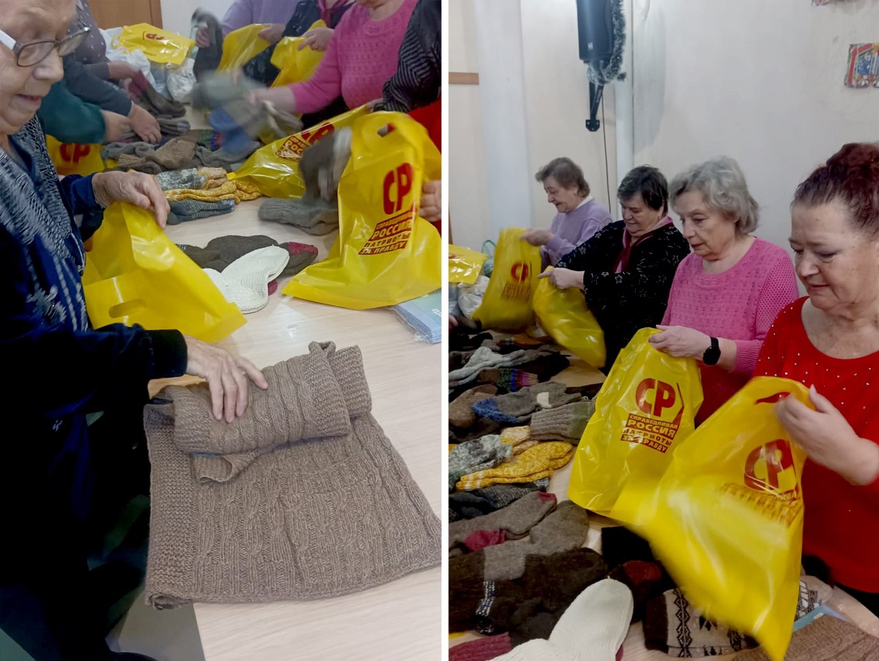 Мастерицы из клубов «ВОИ» связали тёплые вещи для бойцов спецоперации. В каждую вещь было вложено письмо с добрыми словами поддержки и пожеланиями крепкого здоровья от жителей Великого Новгорода.