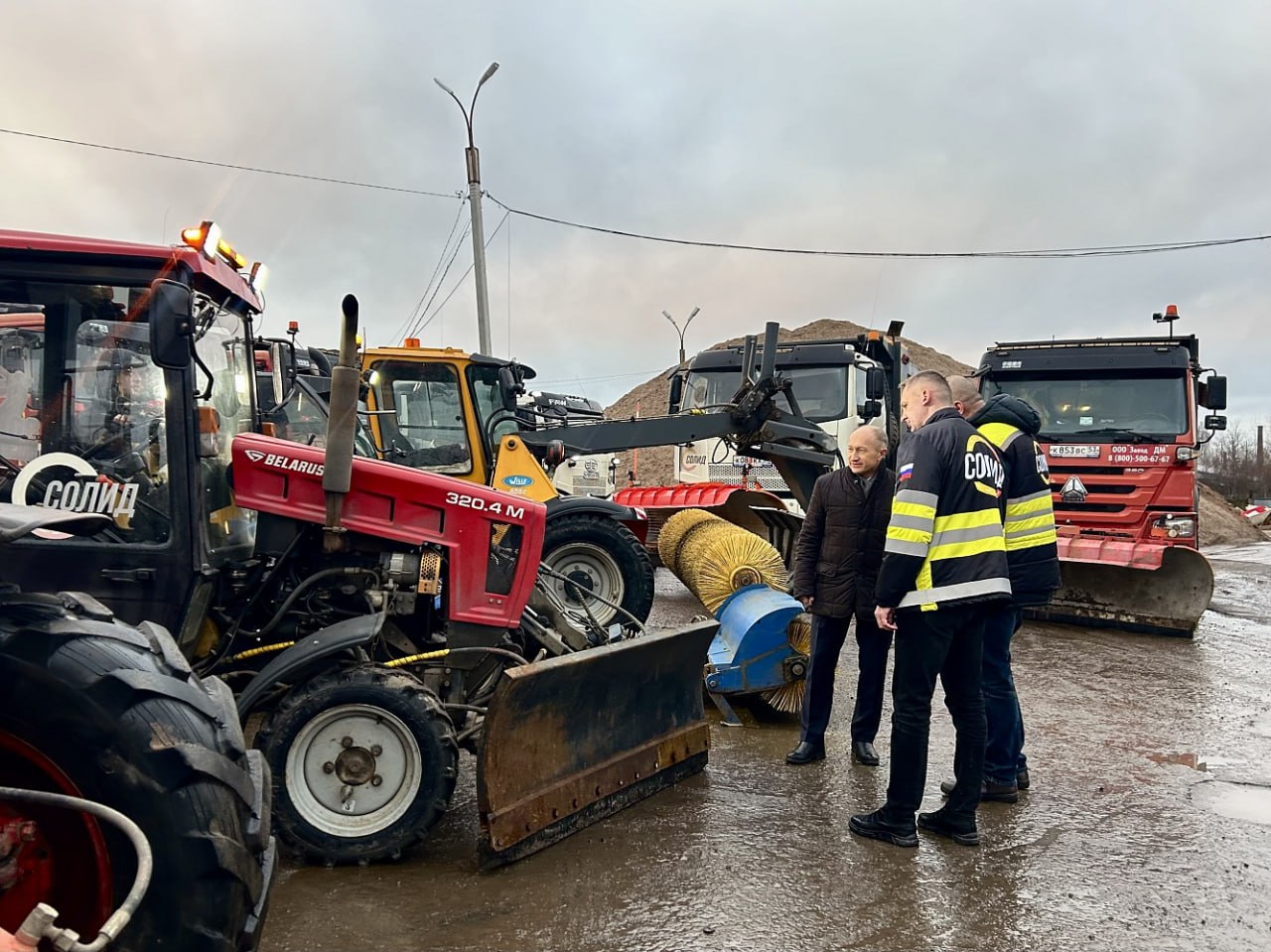 Первый заместитель губернатора Новгородской области Евгений Богданов проверил готовность дорожной техники и объёмы противогололёдных материалов на базе подрядной организации ООО «Солид».