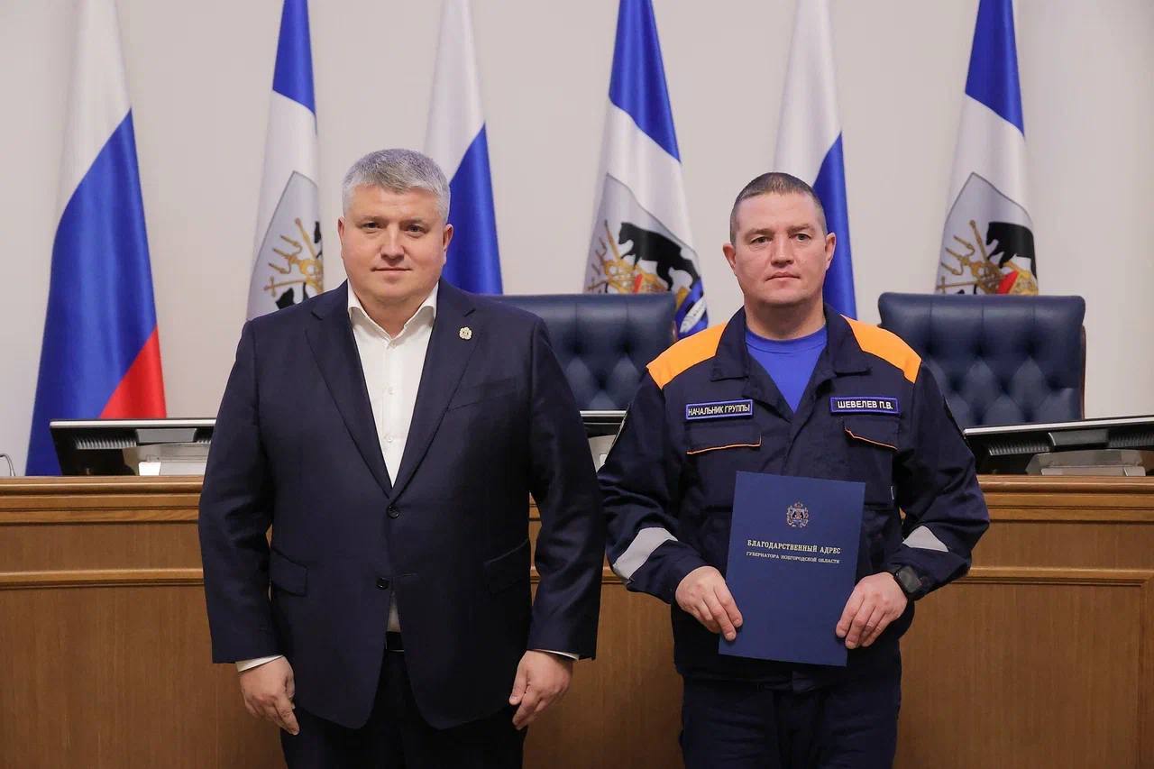 Губернатор поблагодарил спасателей за службу и вручил заслуженные награды.