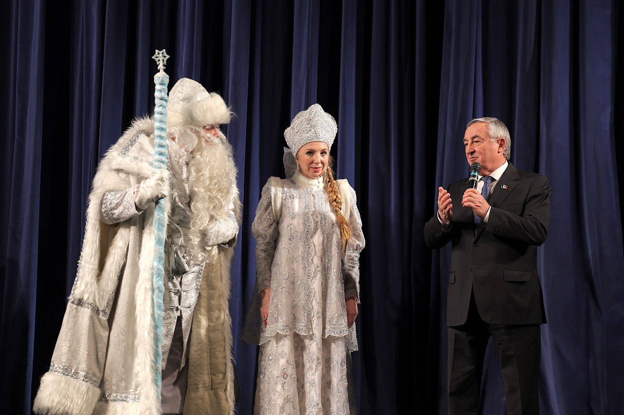 Вместе с Дедом Морозом и Снегурочкой Юрий Бобрышев зажёг огни на ёлке.