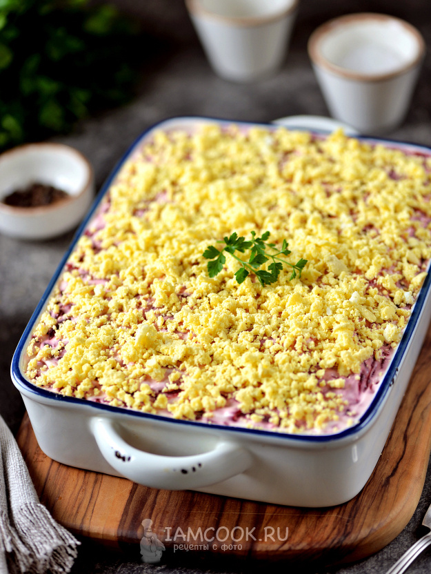 3. Сборка слоями. Используйте глубокую емкость для слоями. Начните с половины натертого картофеля, равномерно распределив и смазав майонезом. Далее выкладываются кусочки селедки, затем лук и, если хотите, добавьте еще один слой картофеля. Следующий слой – крабовые палочки, нарезанные мелко, и тертые белки. В завершении выложите натертую морковь и свеклу. Не забудьте дать салату настояться в холодильнике на пару часов, чтобы все вкусы успели соединиться.