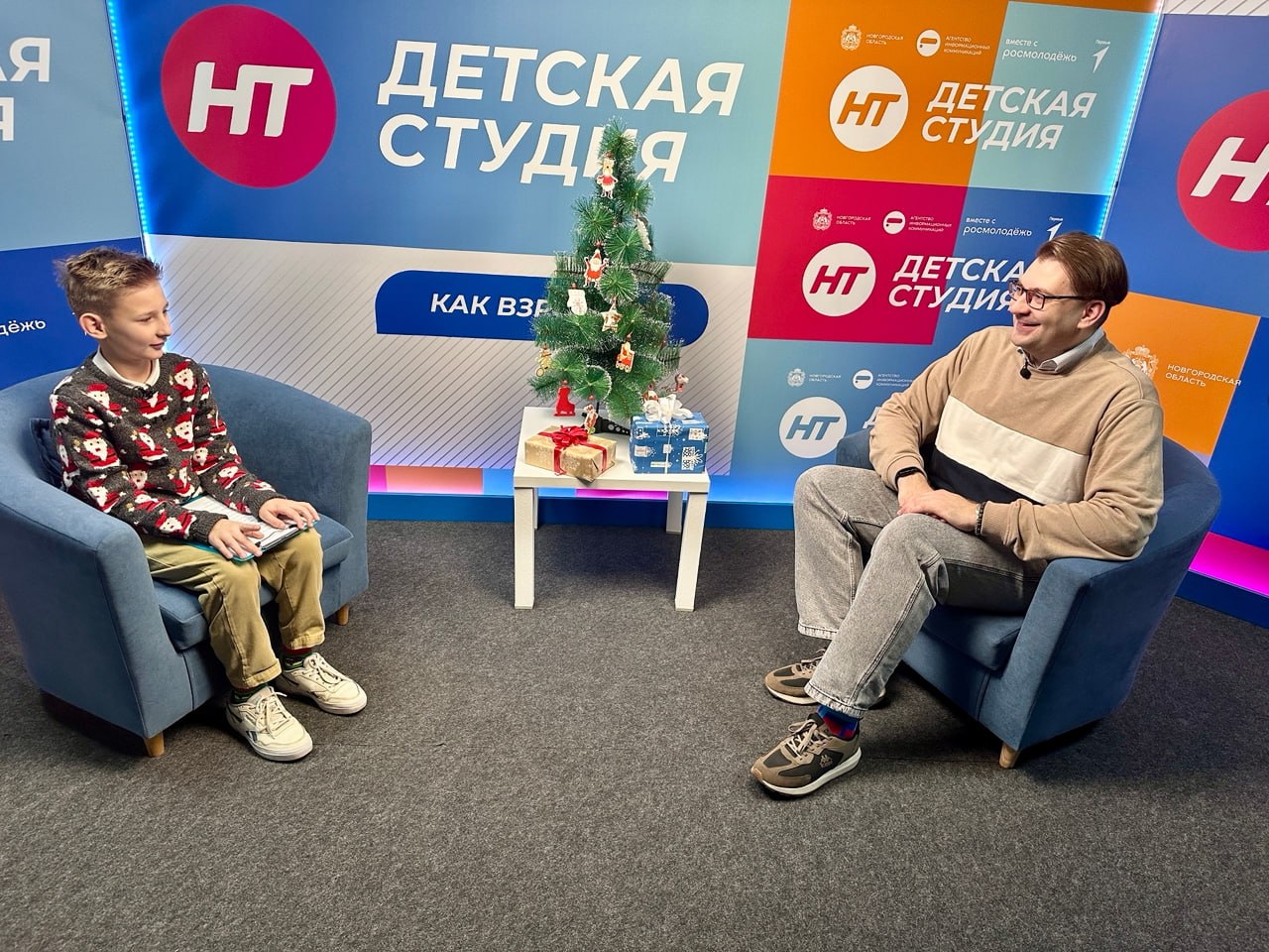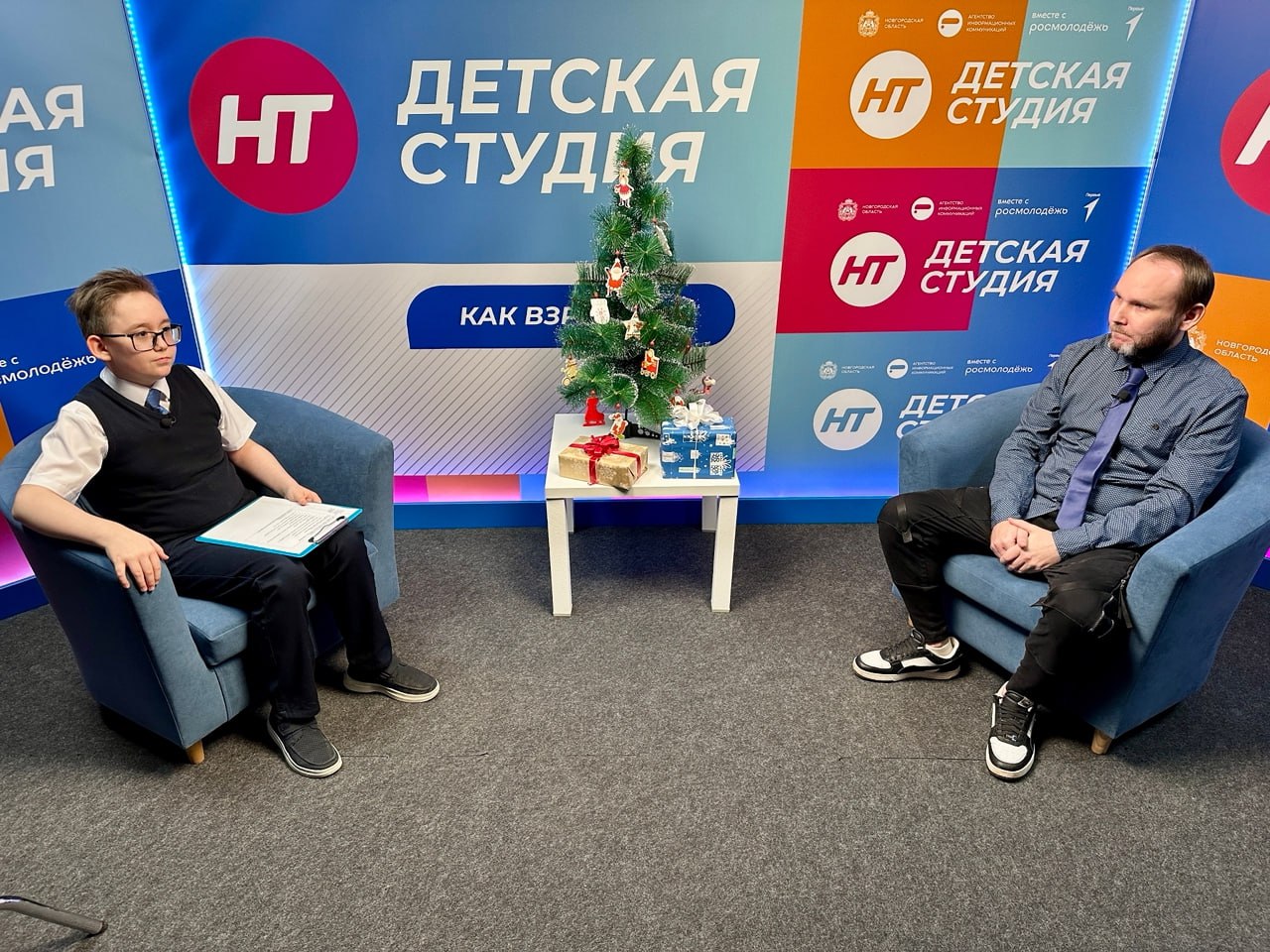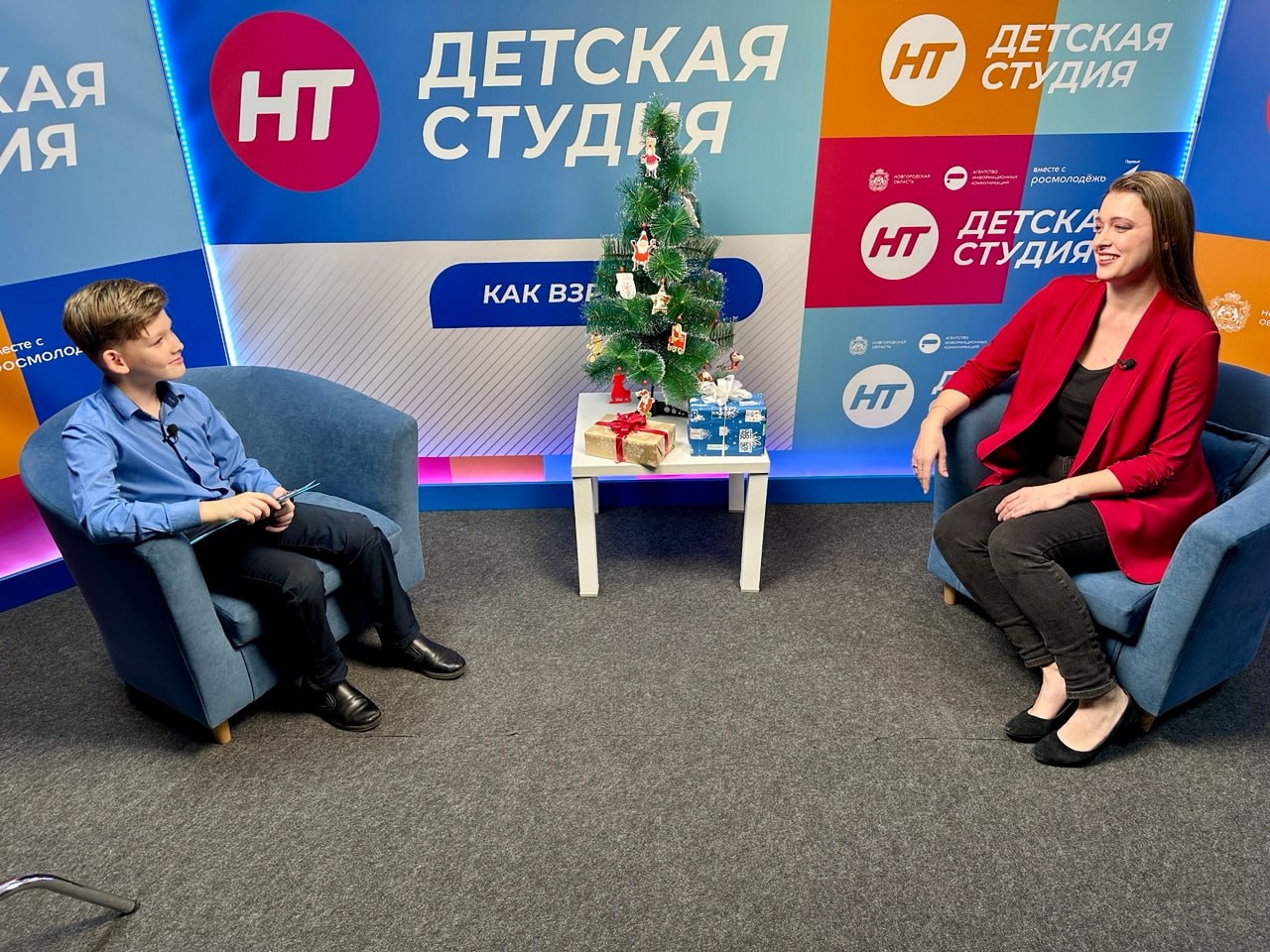 Недавно прошли съёмки праздничных выпусков проекта «Детская студия». На этот раз работники телевидения поменялись ролями: вопросы им задавали самые строгие и честные интервьюеры – собственные дети.