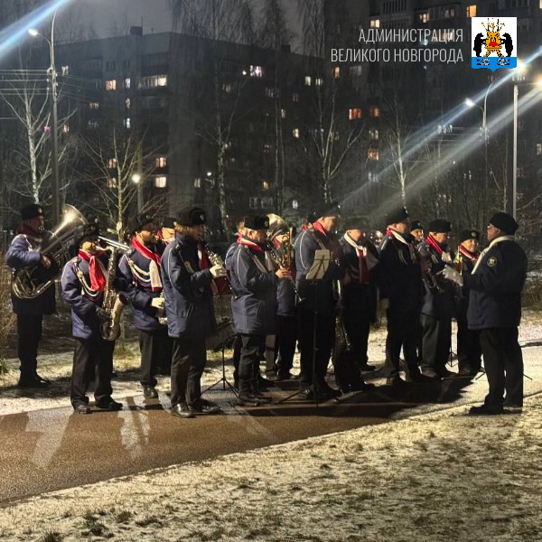 Накануне в Веряжском парке царила новогодняя атмосфера — туда заглянул «Дедморобус» с Новгородским городским духовым оркестром!