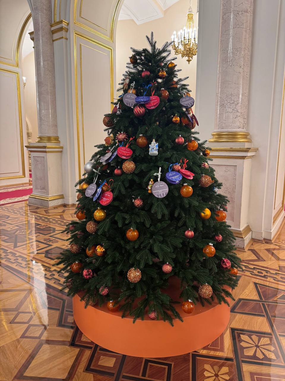 В Москве перед Госсоветом губернатор снял с праздничной ёлки пожелания Николая и Александра из Великого Новгорода, а также Миланы из Энергодара