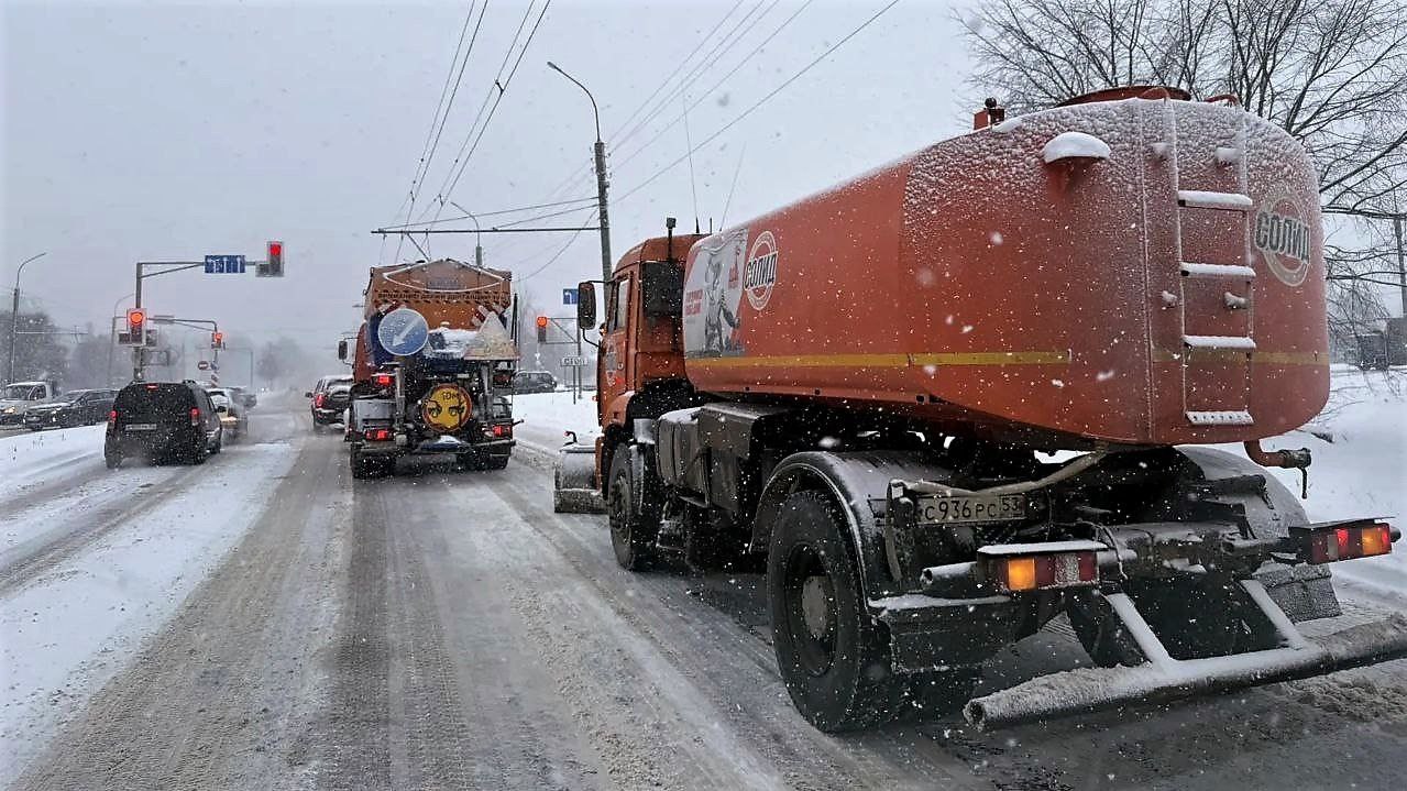 В условиях продолжающегося снегопада сотрудники МКУ «Городское хозяйство», МАУ «Парки Великого Новгорода» и подрядной организации «Солид» в постоянном режиме ведут работы по очистке от снега дорог, проездов, тротуаров, остановочных комплексов и пешеходных переходов.