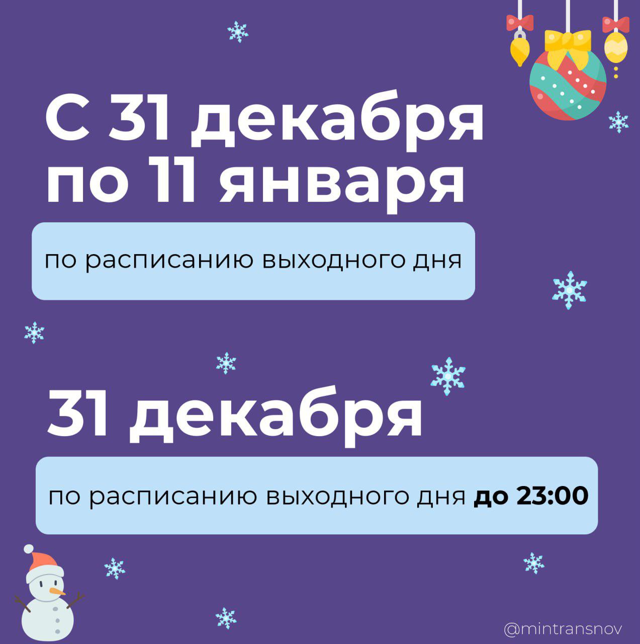 Минтранс опубликовал изменения в работе общественного транспорта Великого Новгорода в период новогодних выходных