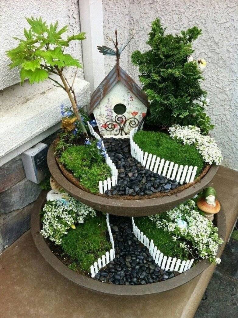 Для реализации этой идеи понадобится всего лишь две глиняные чаши, которые следует соединить друг с другом. Затем слой за слоем засыпается почва, и в получается потрясающее пространство для растений. Не забудьте добавить элементы декора – крошечные заборчики и домики легко найти в магазинах игрушек, пишет канал "Любимая Дача. Сад и Огород".