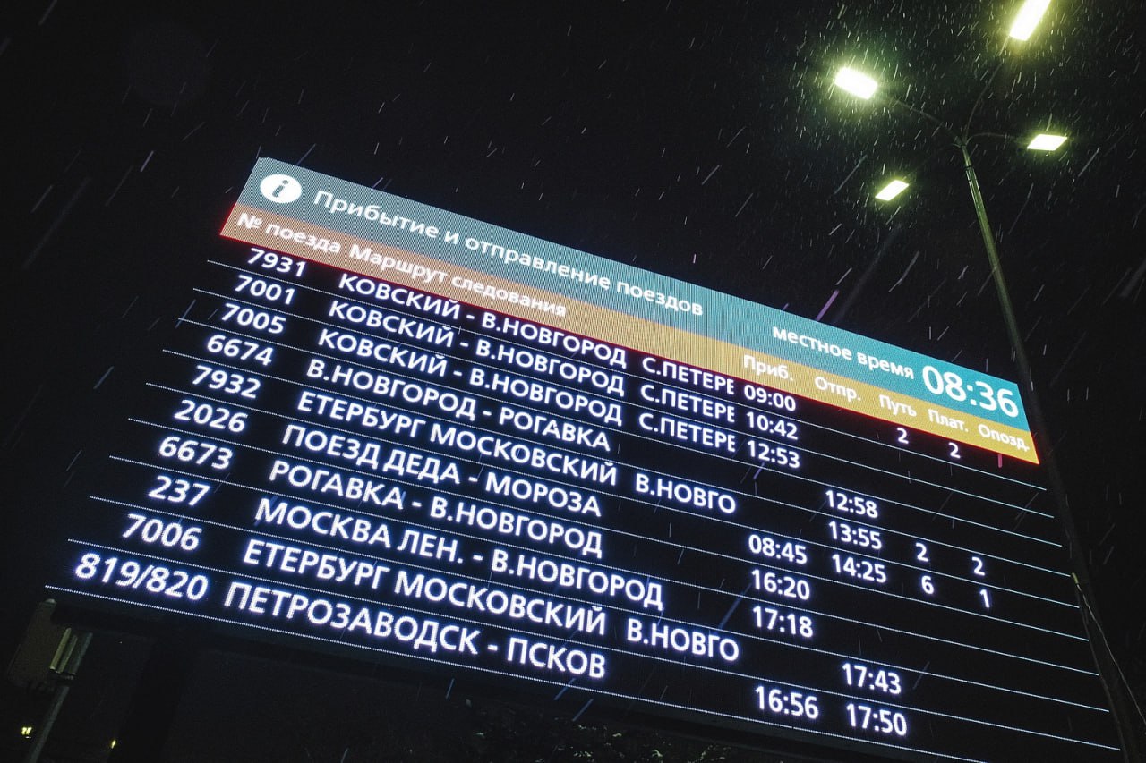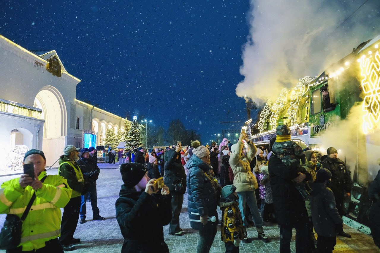 Ещё до восхода солнца 5 января на железнодорожный вокзал Великого Новгорода прибыл сказочный состав — новогодний Поезд Деда Мороза. Несмотря на ранний час, на перроне уже ждали семьи с детьми: фотографировали яркие вагоны и ждали чудесного появления волшебника.