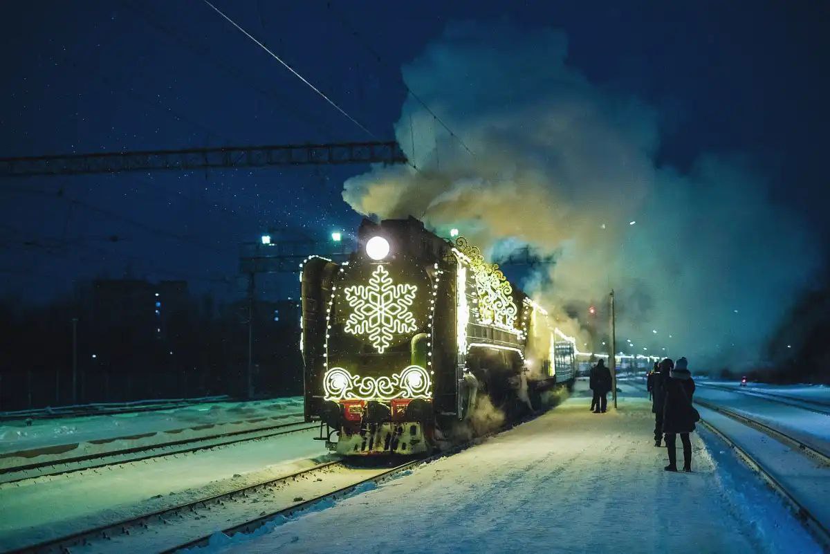 5 января на железнодорожный вокзал Великого Новгорода прибыл сказочный состав — новогодний поезд Деда Мороза. Несмотря на ранний час на перроне уже ждали семьи с детьми: фотографировали яркие вагоны и ждали чудесного появления волшебника.