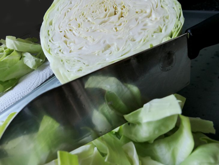 1. Под холодной водой промойте белокочанную капусту, лук и морковь.