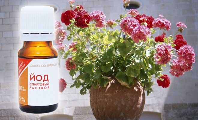 - Подкармливайте герань йодом, растворяя каплю в литре воды и поливая горшок. Кроме того, полезно использовать минеральные удобрения, чтобы обеспечить цветению питательные вещества.