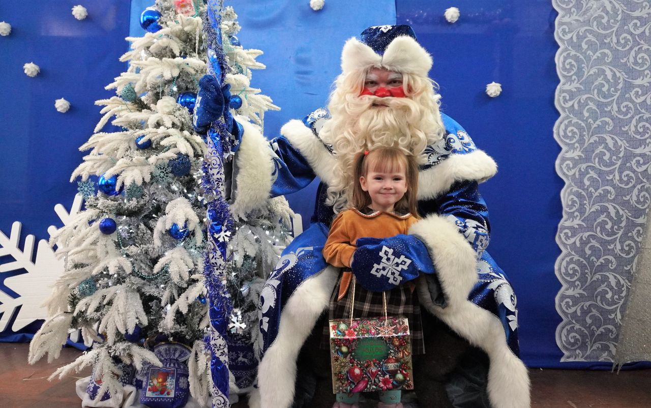 Вместе с родителями дети посмотрели новогоднее представление с участием Деда Мороза и сказочных персонажей, поиграли в веселые игры, покружили в хороводе и получили сладкие новогодние подарки