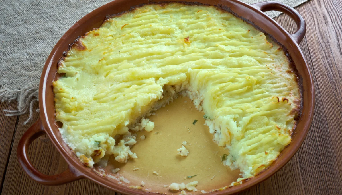 Следующий шаг — равномерно укрыть рыбную начинку картофельным пюре. Если пюре было приготовлено заранее, можно разогреть его, поместив в пакет и подогрев в микроволновой печи. Это быстро сделает его мягким и нежным.