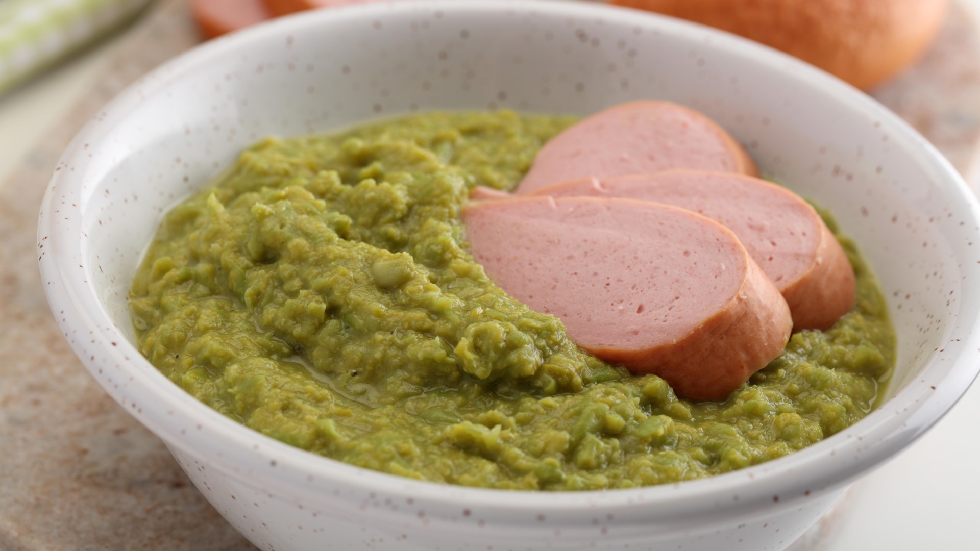 Откиньте горошек и лук на дуршлаг, смешайте овощи со сливками и пробейте в блендере. Подогрейте молоко до температуры чуть выше комнатной и аккуратно влейте в пюре. Добавьте соль и перец, а затем хорошенько перемешайте, советует Novate. Готово! Подавать гарнир можно с кинзой и петрушкой.