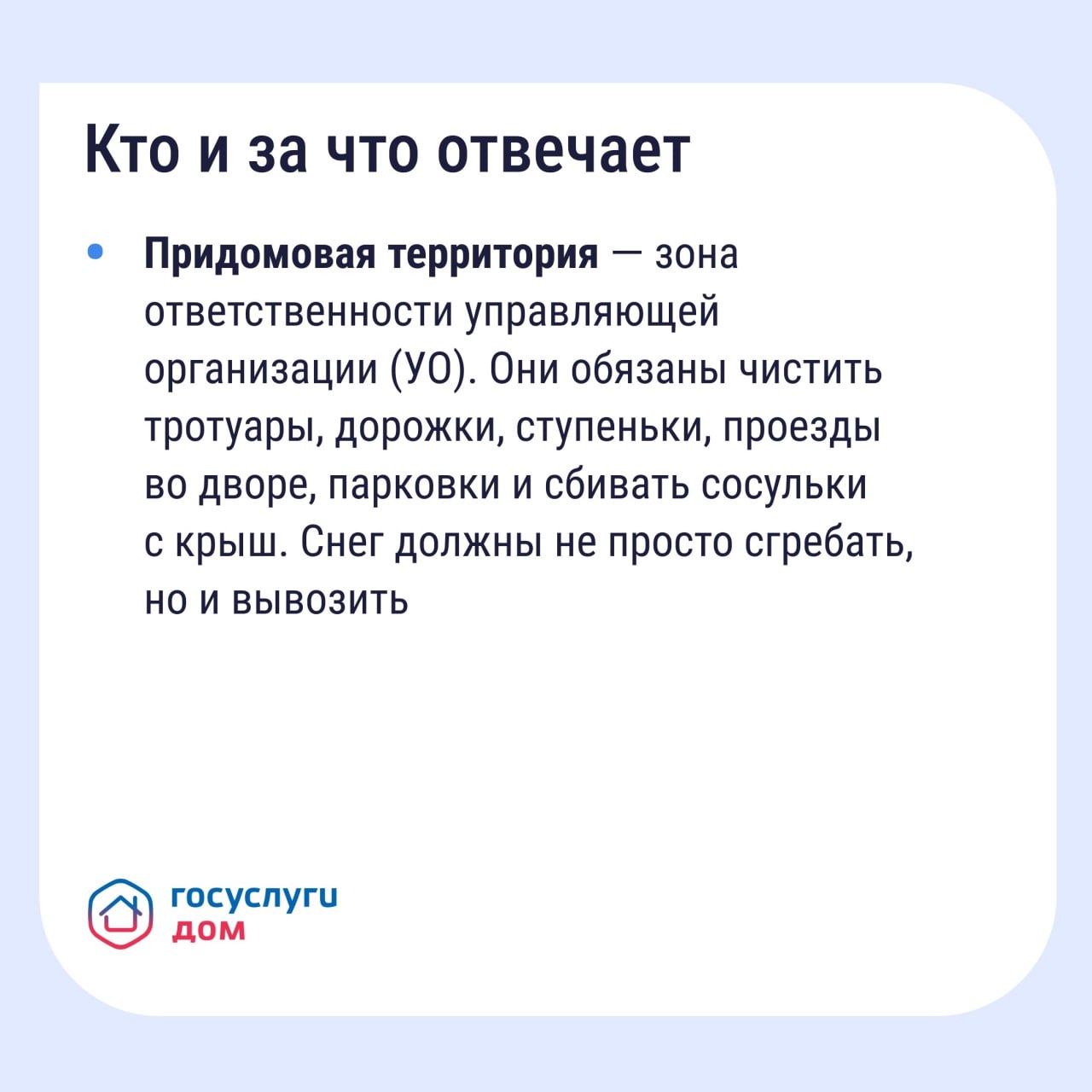 Обратиться по этим вопросам можно через приложение «Госуслуги Дом». Там также можно подать заявку на уборку.