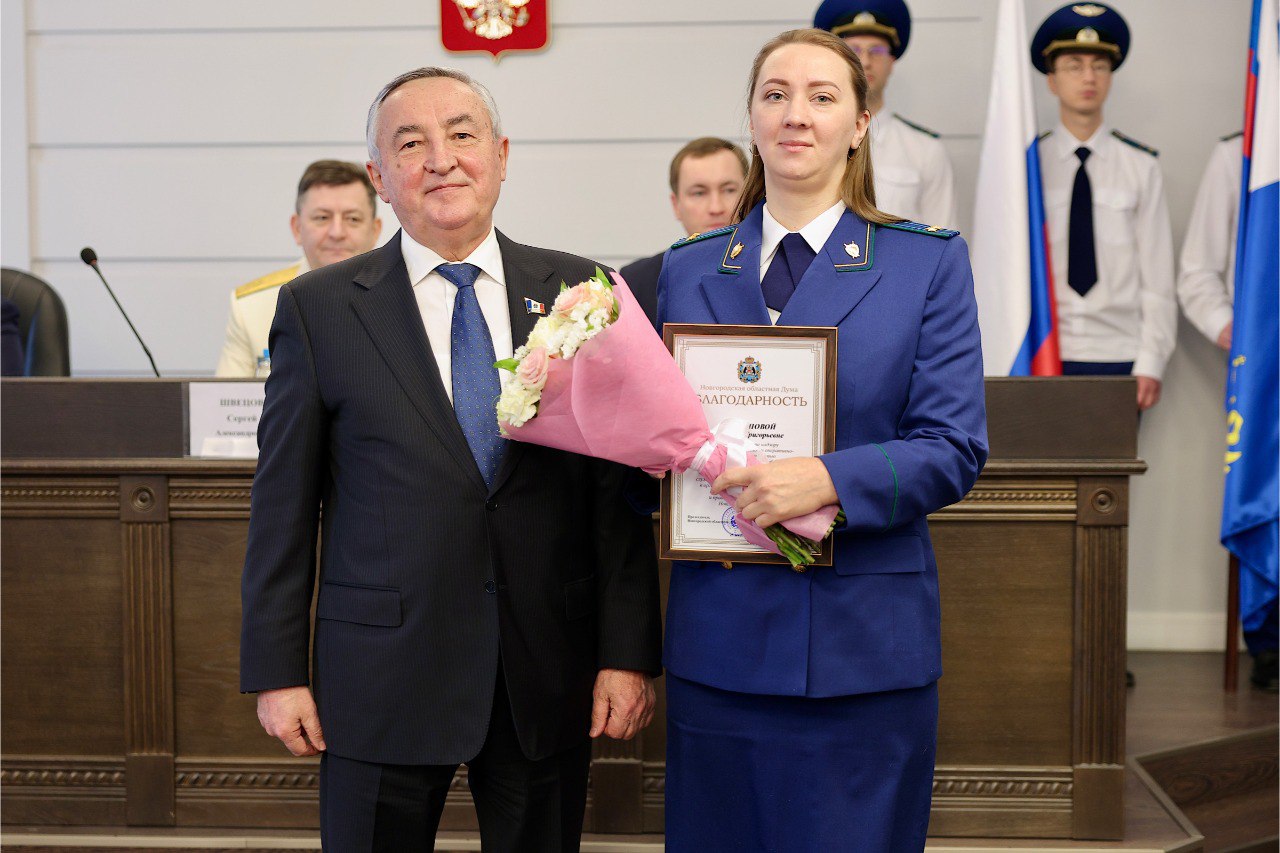 «Главное предназначение вашего ведомства – это контроль за соблюдением законов, которые принимаются как на федеральном, так и на региональном уровне. Более 30 лет, сколько работает Новгородская областная Дума, мы тесно взаимодействуем с органами прокуратуры, представители которой присутствуют на каждом заседании регионального парламента, думских комитетов и комиссий. Имея право законодательной инициативы, областная прокуратура не только надзирает, но и вносит на рассмотрение Думы свои предложения, свои законопроекты. В прошлом году депутаты поддержали шесть ваших законодательных инициатив. Спасибо за совместную работу», – сказал Юрий Бобрышев.
