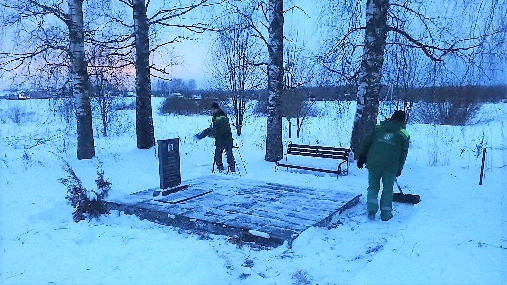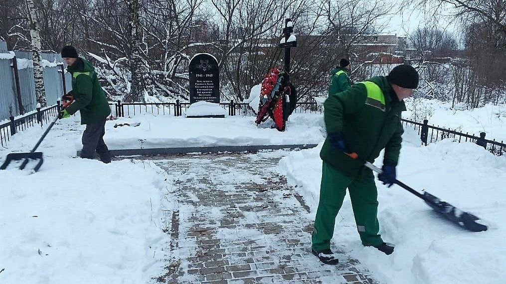 Параллельно ведутся работы по очистке от снега общественных пространств, воинских мемориалов и захоронений