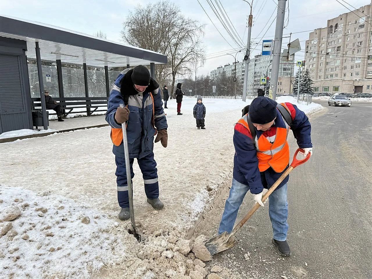 Специалисты МКУ «Городское хозяйство», МАУ «Парки Великого Новгорода» и подрядной организации «Солид» проводят работы по уборке снега с прилотковой части дорог, расширяют тротуары, убирают снег с остановочных комплексов и пешеходных переходов.
